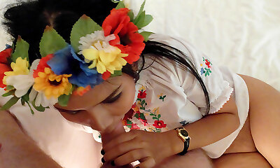 Wondrous blonde Dara takes an old fat man-meat down her young throat