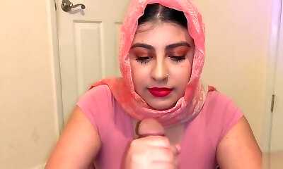 Sneaky stepfather gets blowjob from beautiful Muslim daughter.