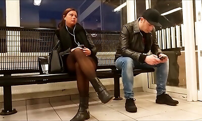 Pantyhose in public blonde 1
