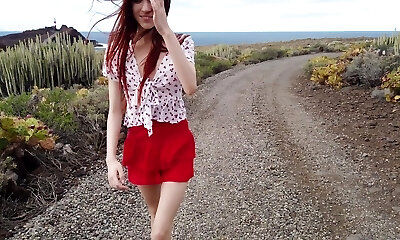 Obscene red haired babe Sherice is playing with stretched pussy labia and big clit