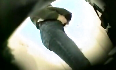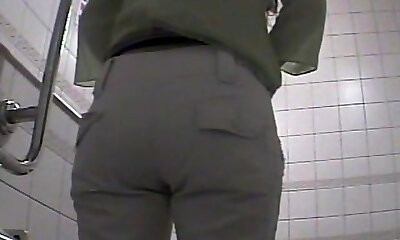 Chesty cute white lady in the rest room room got her ass filmed on cam