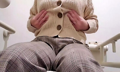 A married woman who can't stand it and pisses while masturbating in the restroom
