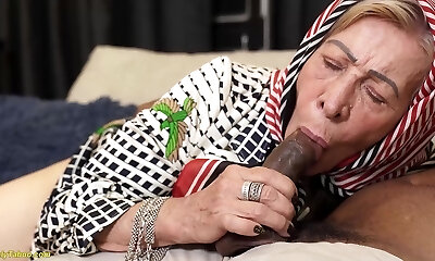 Super-cute boy fucks chubby nasty granny in various styles