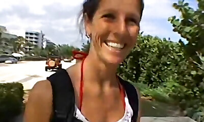 entzückende und vollbusige braunhaarige wichst einen kerl, den sie am strand getroffen hat, bis er sprudelt