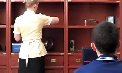 vollbusige stiefmutter als dienstmädchen verkleidet hat einen dreier mit ihrem stiefsohn und seinem freund