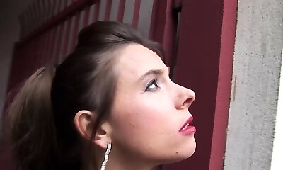 dunkelhaarige whorish damsel macht eine reihe von urinieren im freien
