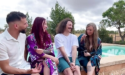 zwei paare perverser freunde kamen an den strand, um eine swingerparty zu veranstalten
