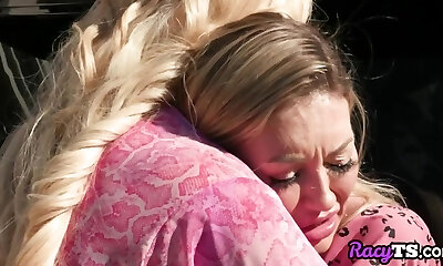 travieso ángel de pelo claro está montando una t-girl rubia