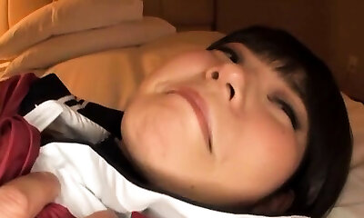 crummy mega-perra asiática naho hadsuki hace hueso bendecido con mano de trabajo y golpes de pecho córneo
