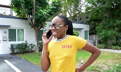 Black slut Amari Anne has to suck a dick before getting plowed