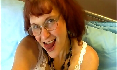 Amateur mature with glasses loves to pleasure a pipe with her jaws