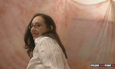 Very spectacular nymph trap glasses nerd anal dildo wanking