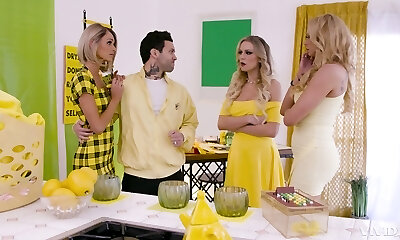 дразнящие красотки возятся друг с другом и один чудесный парень
