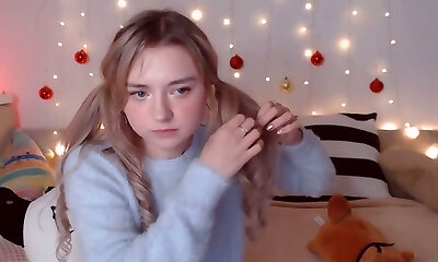 неопытная веб-камера очаровательного подростка играет соло с массивным поддельным пенисом