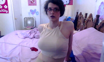 Brunette Tranny jerking in stiff dick in solo Webcam