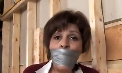 Horny student is testing pussy of tied up and restrained towheaded Nikki